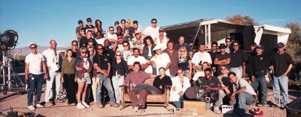 Cecil B.DeMille and Charlton Heston with the cast and crew of "The Ten Commandments" (1956)
