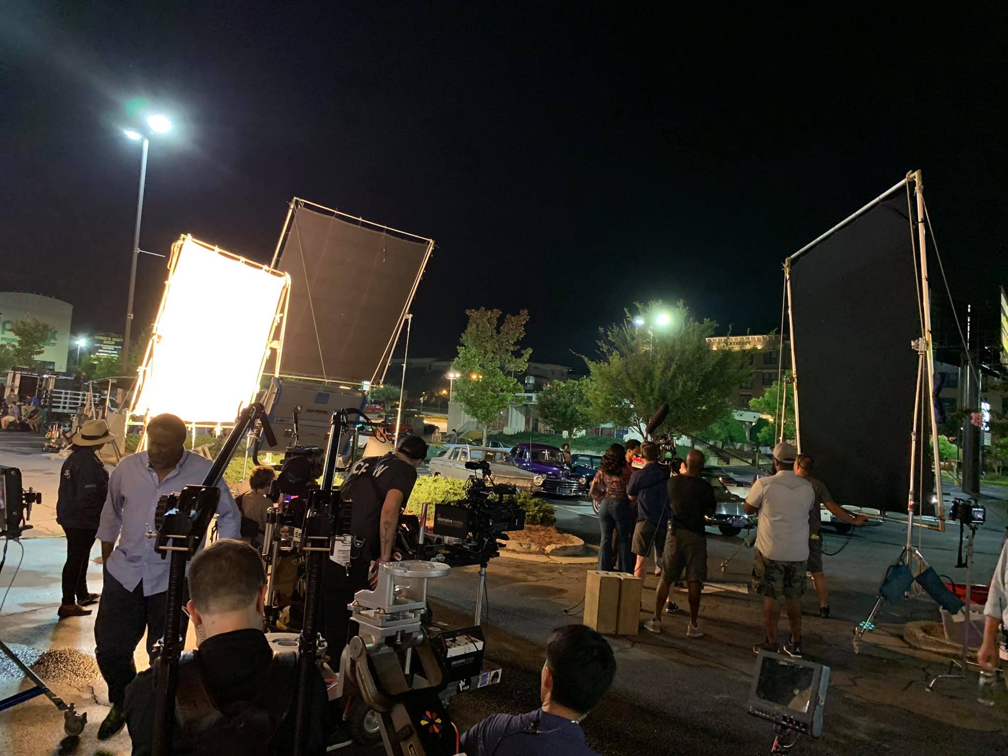 Here's one from Key Grip Extraordinaire Brad Heiner Not truly a Crew Shot, but it is his Grip Crew rigging a night shot :)\